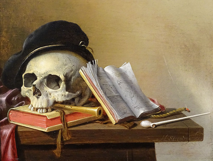 Harmen Steenwyck (1612-1656). Stillleben mit Totenschädel, Büchern, Flöte und Pfeife. Undatiert.