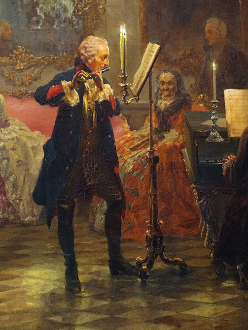 Adolph Menzel (1815-1905). Flötenkonzert Friedrichs des Grossen in Sanssouci, 1850-52. Detail.