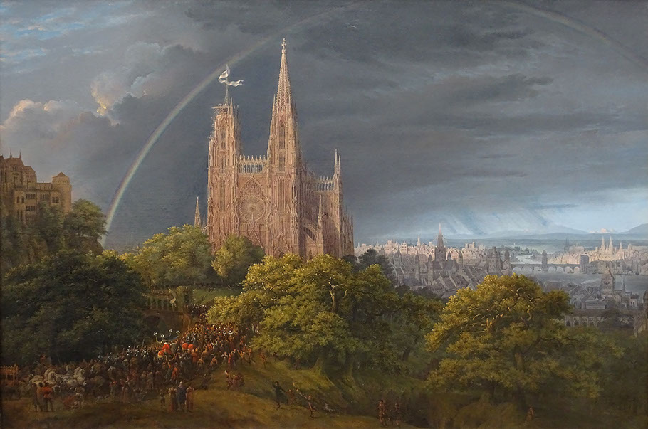 Karl Friedrich Schinkel (1781-1841). Mittelalterliche Stadt an einem Fluss, 1815.
