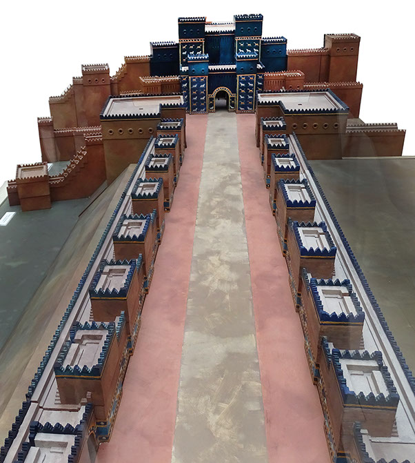 Modell der Prozessionsstrasse, hinten das Doppeltor der Ischtar.