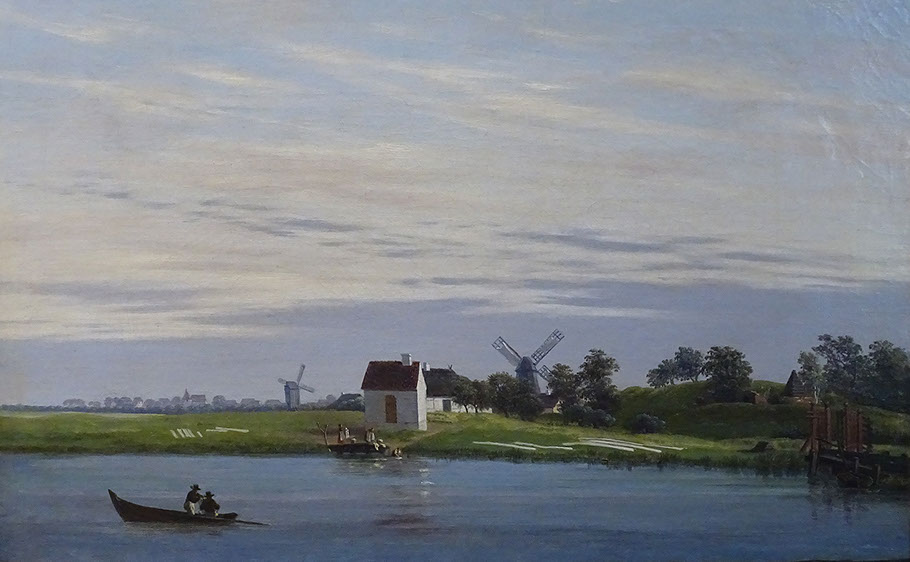 Caspar David Friedrich (1774-1840). Landschaft mit Windmühlen (Am Ryk in Greifswald), 1822-23.