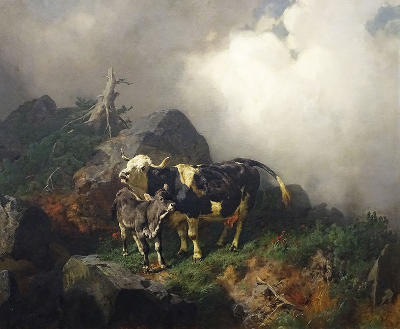 1856-Rudolf Koller (1828-1905). Kuh mit Kalb im Gewitter verstiegen, 1856. Kunstmuseum Bern.