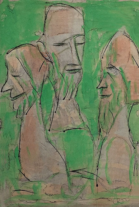 Christian Rohlfs (1849-1938). Drei Köpfe auf Grün, 1922.