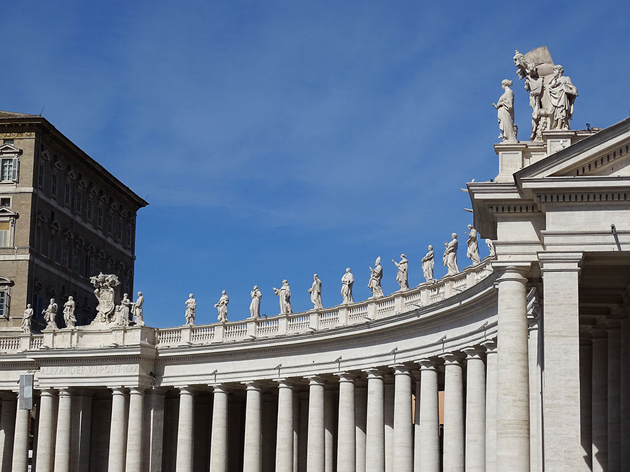 Kolonnaden und Statuen (Werkstatt Bernini), Piazza San Pietro, Rom.