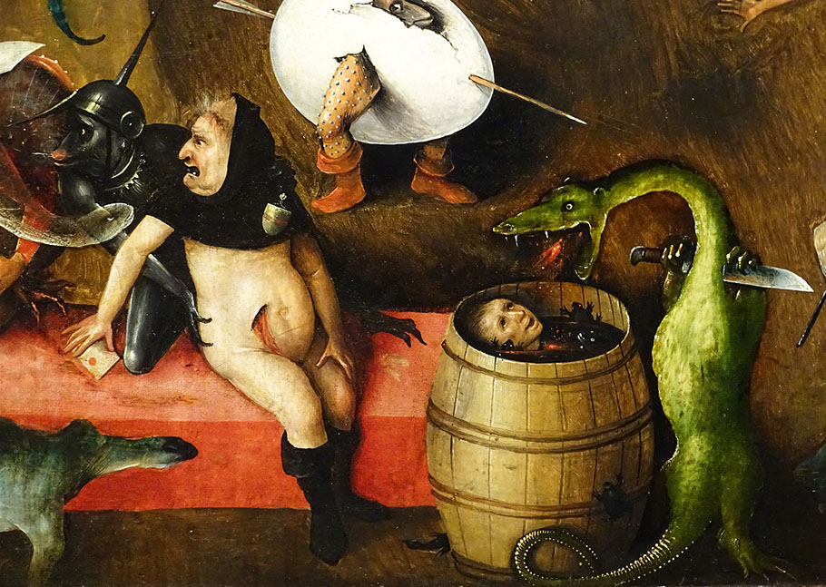 1500-Hieronymus Bosch (1450-1516). Der Garten der Lüste, 1500-1505. Rechter Flügel. Detail. Museo del Prado Madrid.