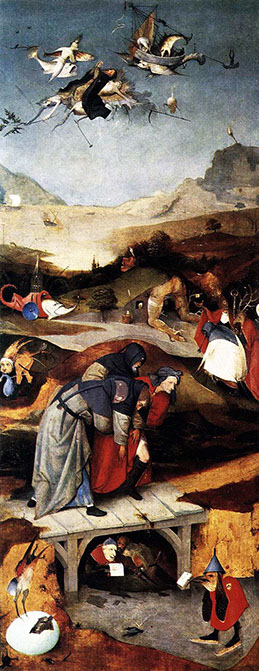 1495-Hieronymus Bosch (1450-1516). Die Versuchung des hl. Antonius, 1495-1515. Linker Flügel.