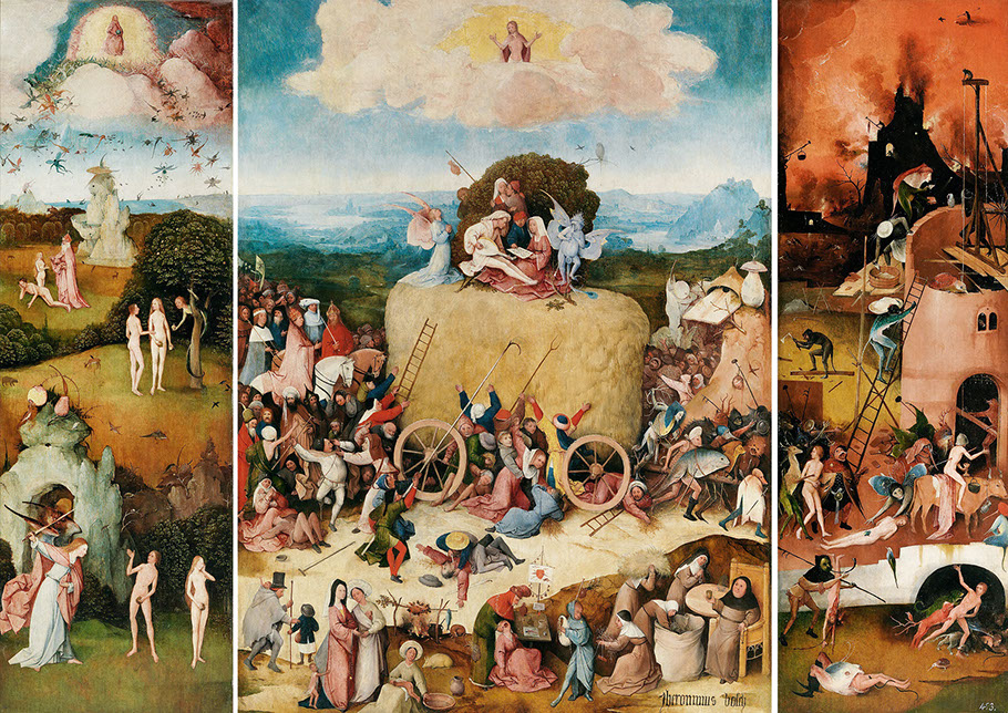 1515-Hieronymus Bosch (1450-1516). Der Heuwagen, 1515. Museo del Prado Madrid.