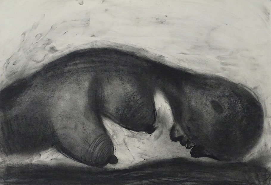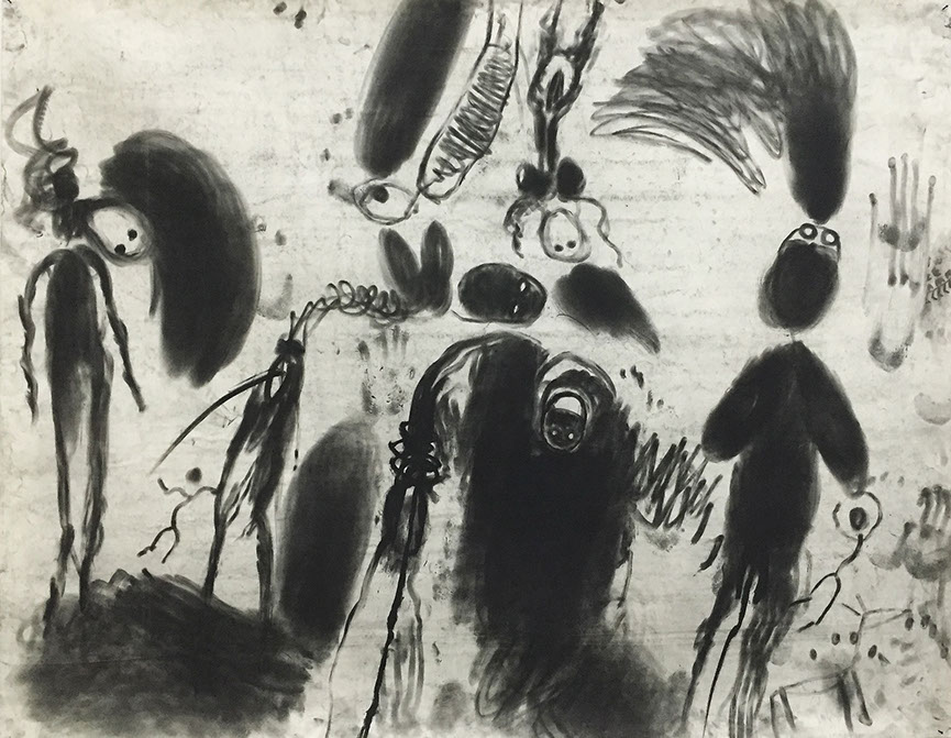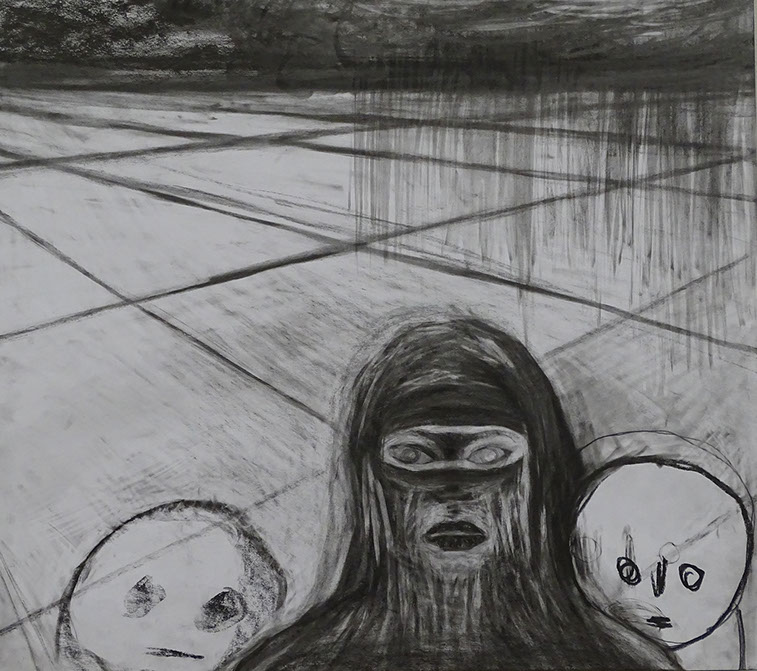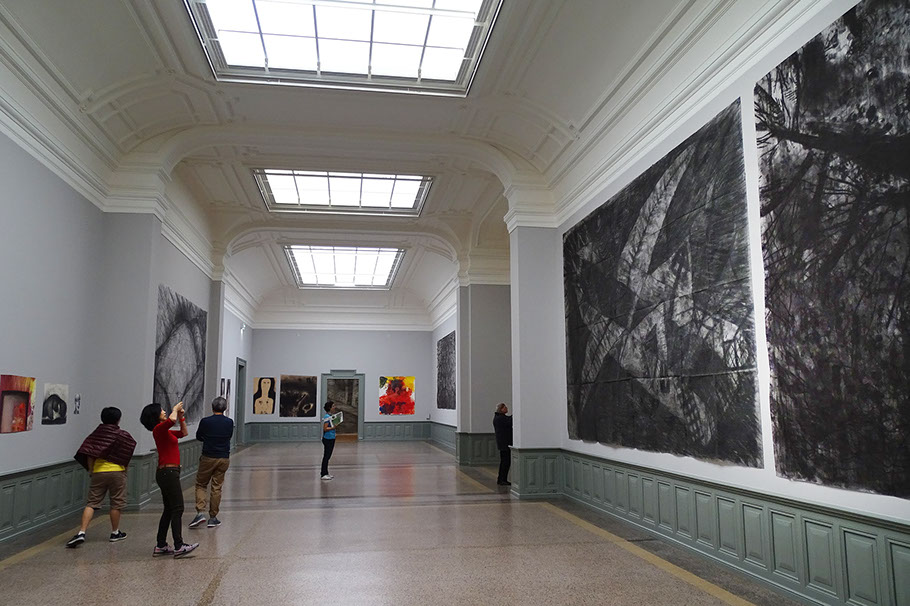 Ausstellung «Miriam Cahn – Ich als Mensch» im Kunstmuseum Bern, vom 22.2. bis 16.6.2019. Schwarz-weiss-Arbeiten.