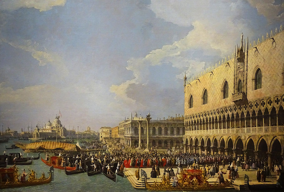 1730-Canaletto (1697-1768). Empfang eines Botschafters vor dem Dogenpalast, 1730. Kunsthaus Zürich.