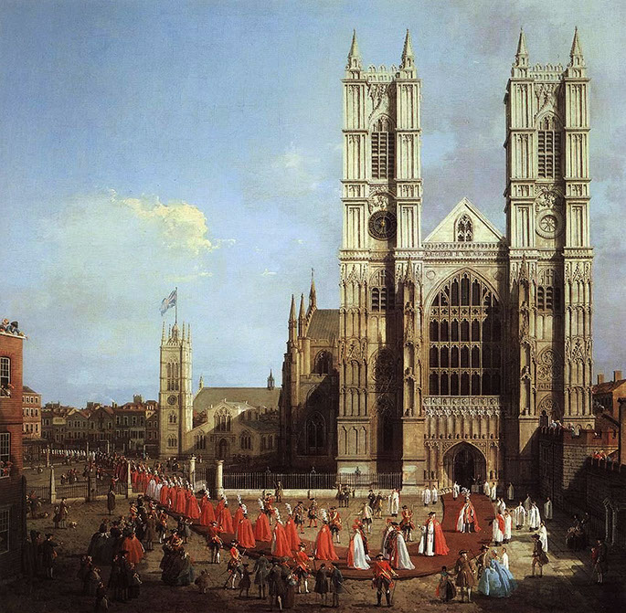 1749-Canaletto (1697-1768). Westminster Abbey with Procession of Knights, 1749. Westminster Abbey, London.