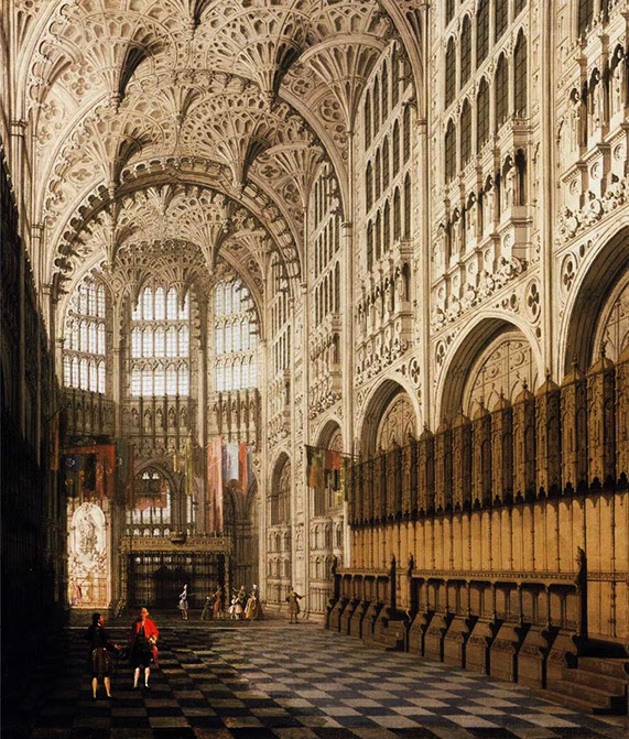 1750-Canaletto (1697-1768). Interior of Henry VII Chapel, Westminster Abbey. Private Collection, Public Domain.