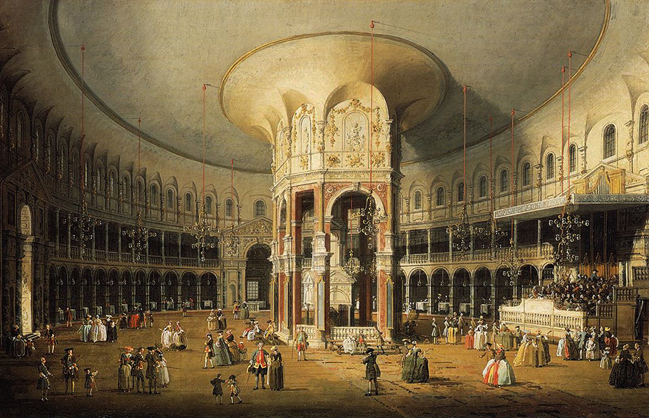 1751-Canaletto (1697-1768). Interior of Rotunda, Ranelagh Gardens, 1751. Private Collection, Public Domain.