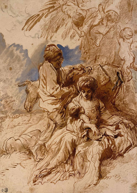 1650-Castiglione (1609-1664). Die Rast auf der Flucht nach Ägypten, 1650-55. Fondation Custodia, Paris.