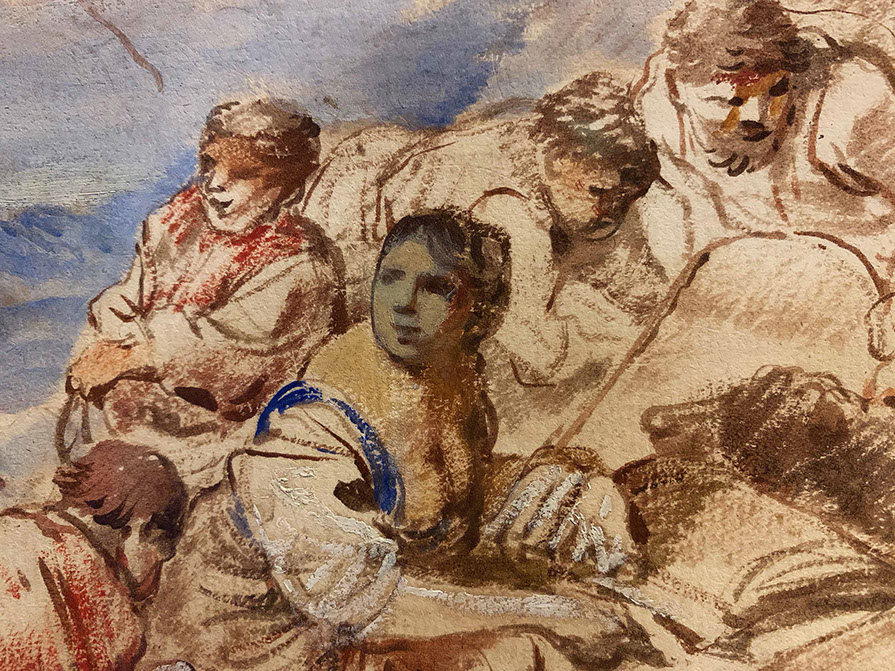 1650-Castiglione (1609-1664). Rachel verbirgt die Idole, 1650-55. Detail. National Galleries of Scotland, Edinburgh.