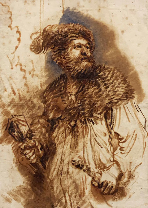 1655-Giovanni Benedetto Castiglione (1609-1664). Potentat mit Streitkolben und Schwert, 1655-60. Custodia Paris.