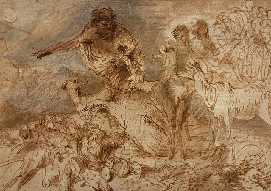 1660-Giovanni Benedetto Castiglione (1609-1664). Noah leitet die Tiere in die Arche, 1660. Skizze. Kunsthaus Zürich.