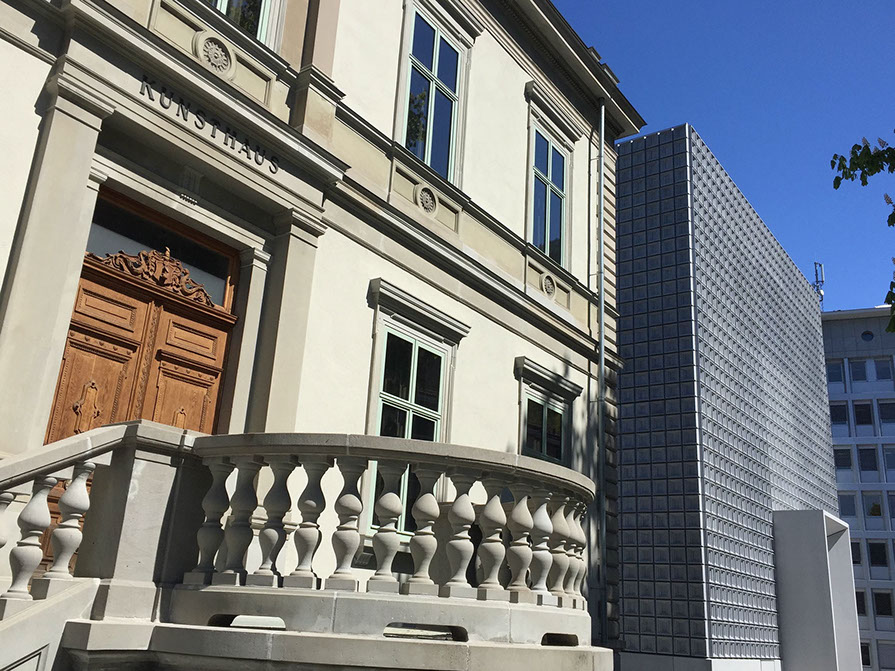 Hier gehts nur zum Café, der Eingang zum Kunsthaus ist im neuen Gebäude, im angrenzenden Kubus...