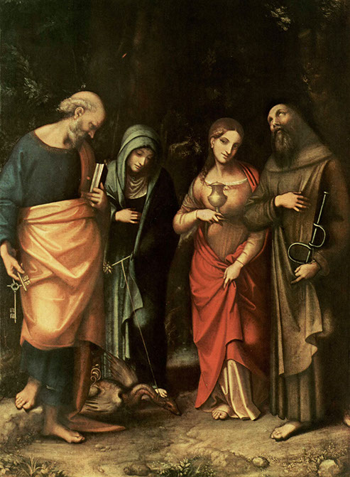 1517-Correggio (1489-1534). Hl. Petrus, Martha, Maria Magdalena, Leonard, 1517. Metrop. Museum of Art, New York.