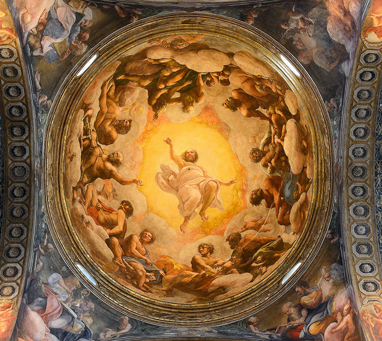 Assunzione della Vergine, 1526-30. Kuppelfresko im Dom von Parma. Foto Livioandronico2013, WikiCommons.