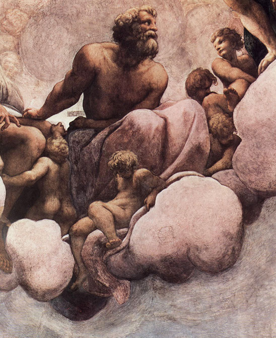 1520-Correggio (1489-1534). Vision des hl. Johannes auf Patmos, 1520-23. Detail. San Giovanni Evangelista, Parma.