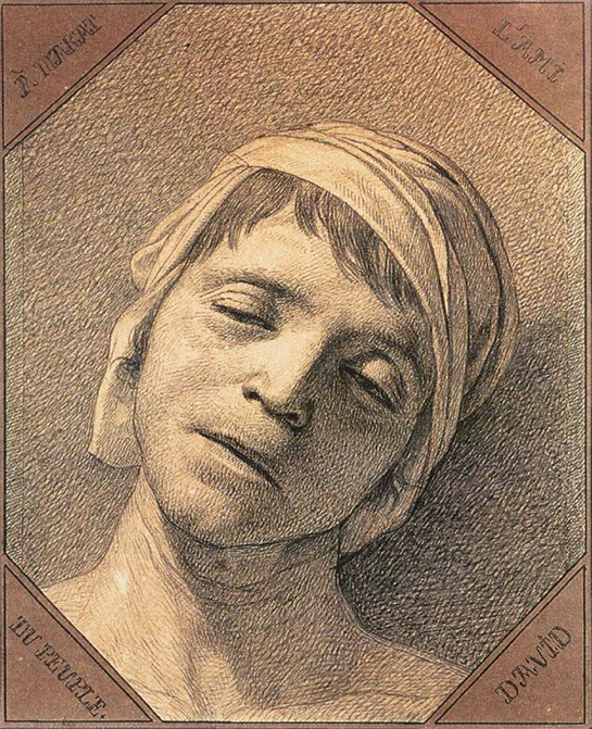 1793-Jacques-Louis David (1748-1825). Etude tête de Jean-Paul Marat assassiné, 1793. Château de Versailles.