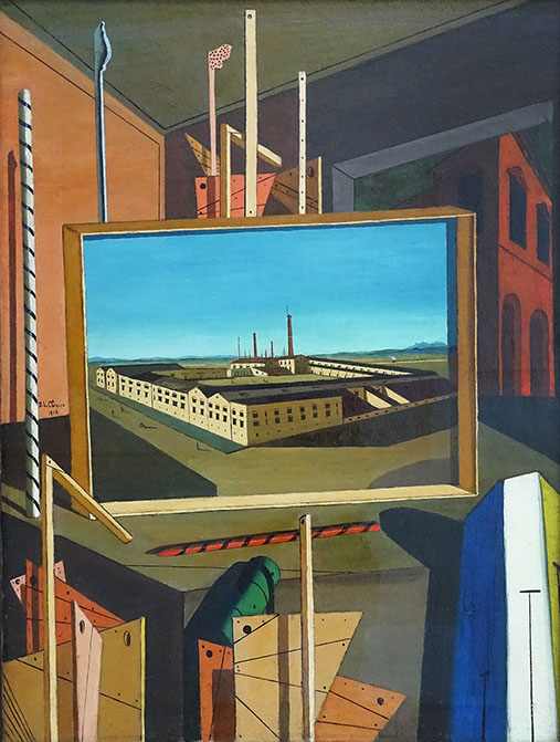 1916-Giorgio de Chirico (1888-1978). Metaphysisches Interieur mit grosser Fabrik, 1916. Staatsgalerie Stuttgart.