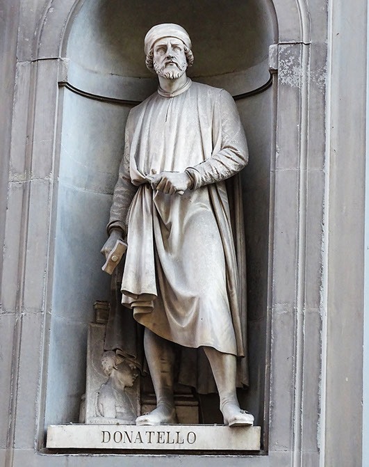 Donatello-Statue in einer Nische vor den Uffizien, Florenz.