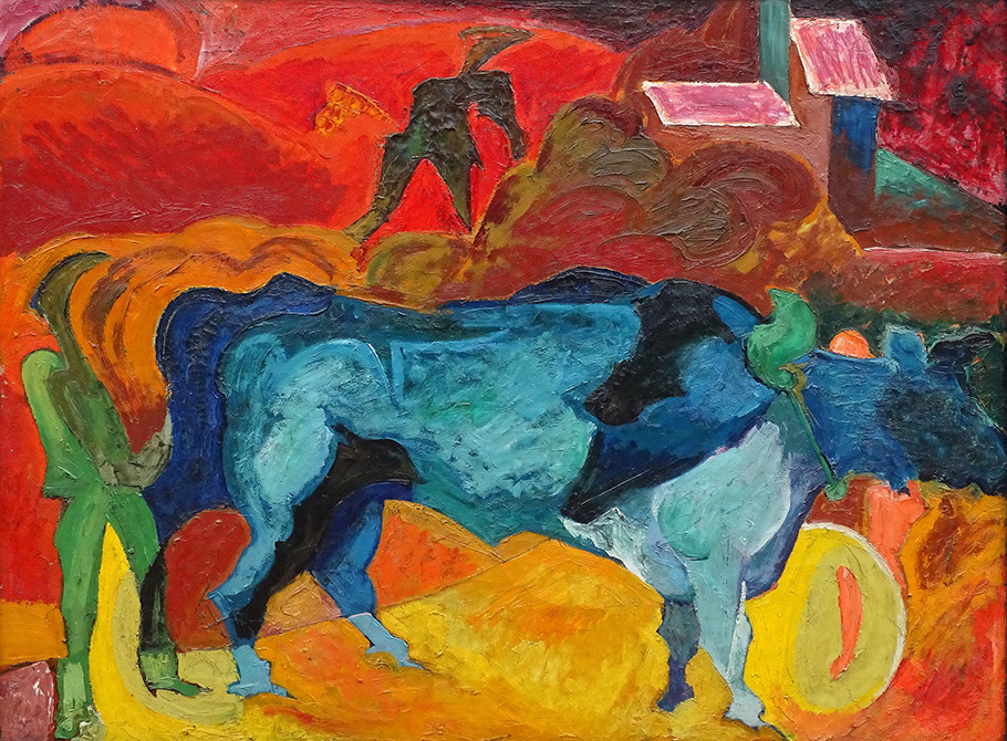 Carl Lohse (1895-1965). Ernte, Blaue Stiere, 1920.