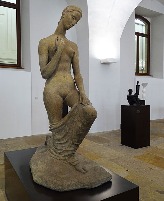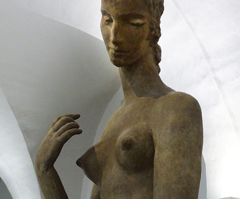 Helmut Heinze (1932). Knabenakt stehend, 1976-77. Wilhelm Lehmbruck (1881-1919). Kniende, 1911. Steinguss.