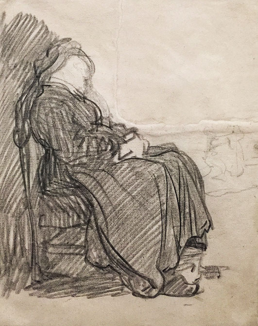 Rembrandt (1606-1669). Schlafende alte Frau im Sessel, 1628-30.