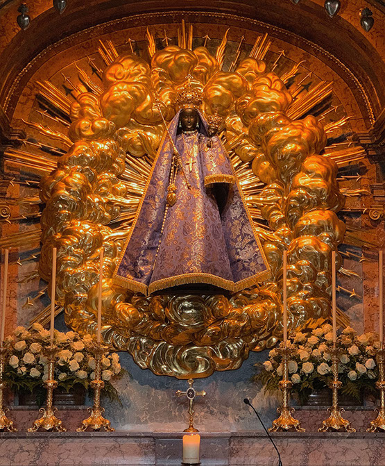 Frauenbrunnen mit der vergoldeten Jungfrau Maria.