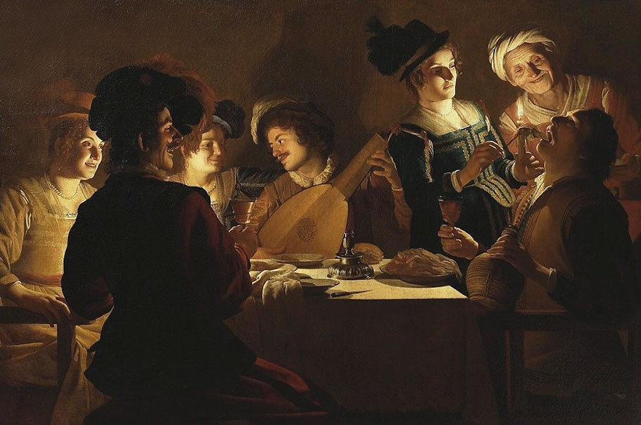 Gherardo delle Notti alias Gerrit van Honthorst (1592-1656). Cena con suonatore di liuto.