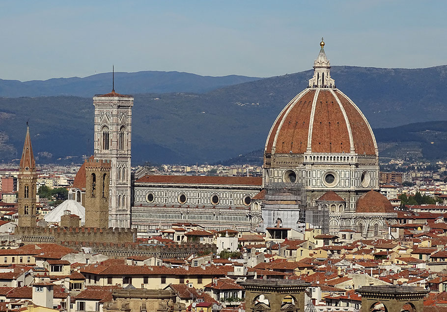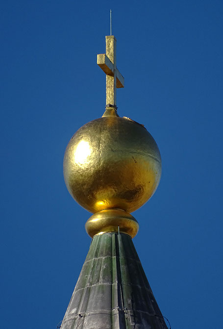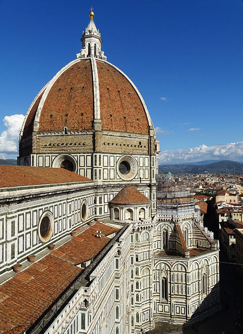Die Marmorlaterne auf der Kuppel. Mit Bronzekugel und Kreuz, von Verrocchio.