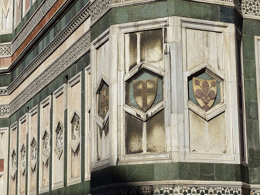 Die mächtige Südfassade mit der dreifarbigen Marmorverkleidung.