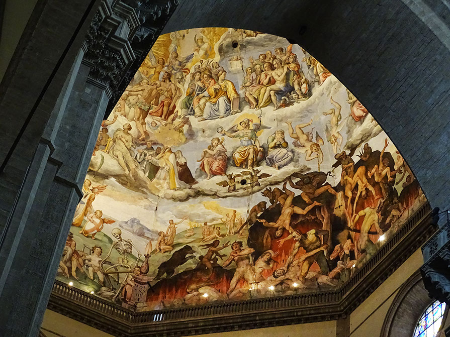 Blick zum Fresko der Kuppel. «Das Jüngste Gericht», begonnen von Vasari, beendet von Zuccari.