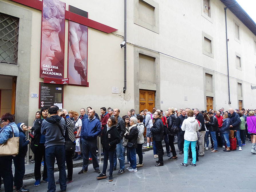 Anstehen vor der Akademie, um Michelangelos David zu sehen...