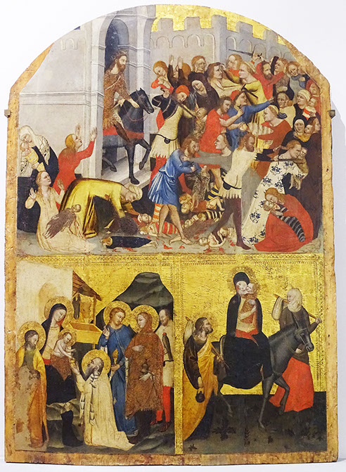 Bottega di Jacopo di Cione, ca. 1375-85. Massacre of the Innocents, Adoration of the Magi, Flight into Egypt.