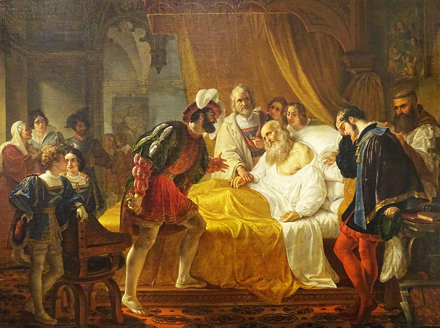 Cesare Mussini (1804-1879). Der sterbende Leonardo da Vinci bei François I, 1828. Galleria dell'Accademia, Firenze.