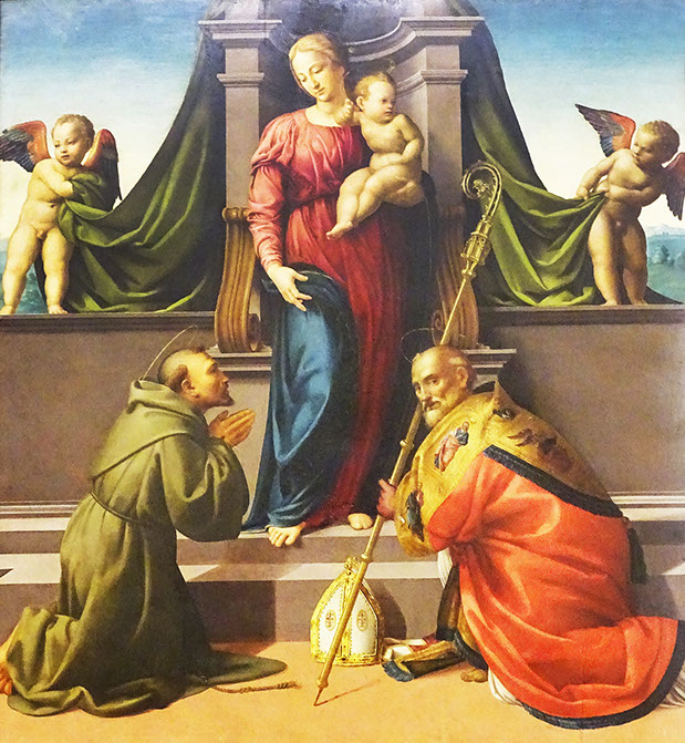 Francesco Granacci (1469-1543). Madonna con Bambino e i Santi Francesco e Zanobi. Galleria dell'Academia, Firenze.