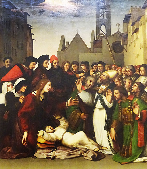 Ridolfo del Ghirlandaio (1483-1561). San Zanobi resuscita un fanciullo. Galleria dell'Accademia, Firenze.