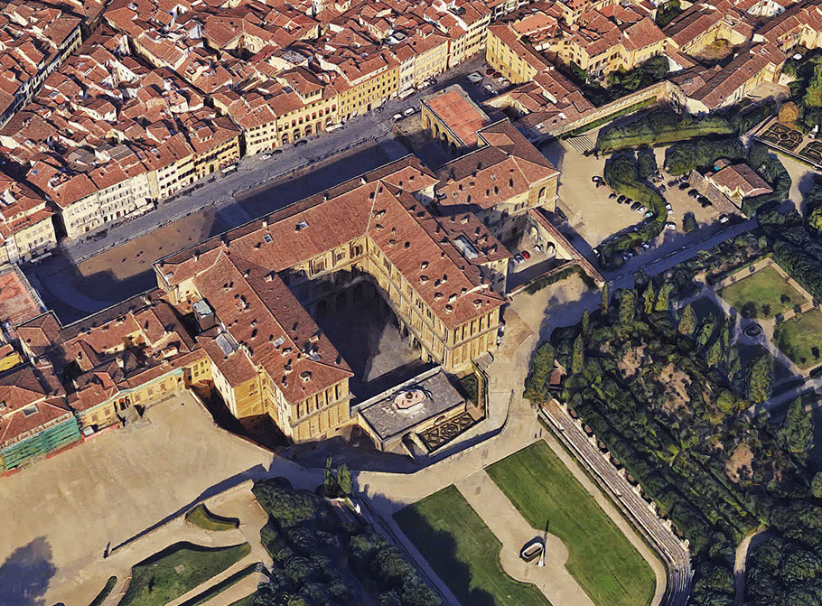 Palazzo Pitti aus der Luft gesehen. Foto Google Earth.