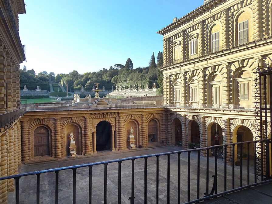 Boboli-Garten, Palazzo und Blick auf Florenz.