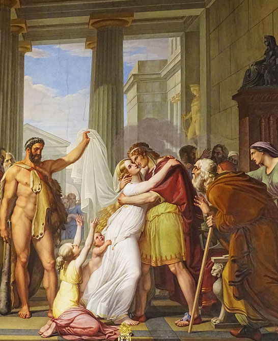 Saal des Herkules. Herkules führt die wiederauferstandene Alkestis zu ihrem Ehemann Admetos zurück.