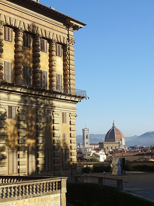Palazzo Pitti und Blick auf Florenz mit Duomo und Campanile.