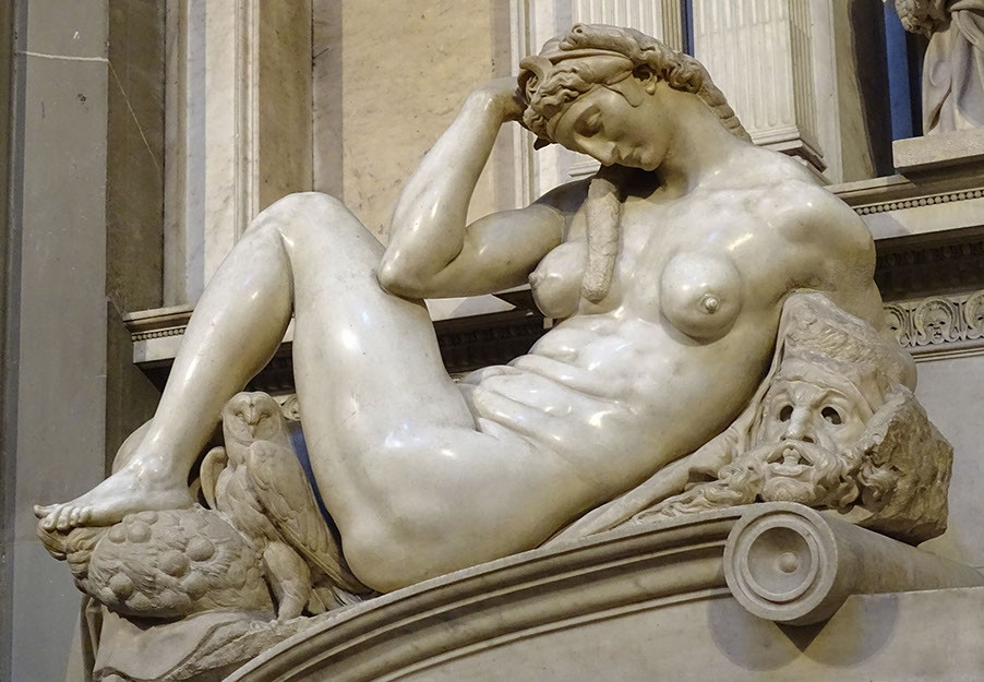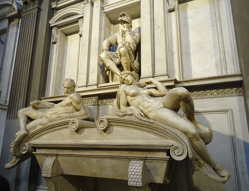 Grabmal von Lorenzo di Piero de Medici, Herzog von Urbino. Skulptur von Michelangelo: Abendröte, Morgenröte.