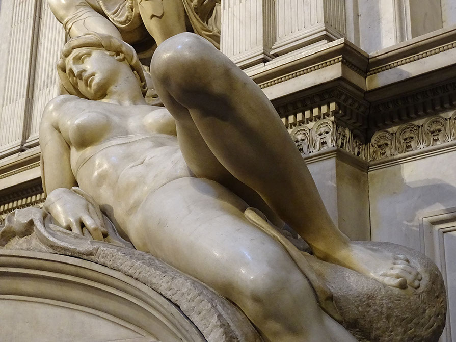 Grabmal von Lorenzo di Piero de Medici, Herzog von Urbino. Skulptur von Michelangelo: Morgenröte.