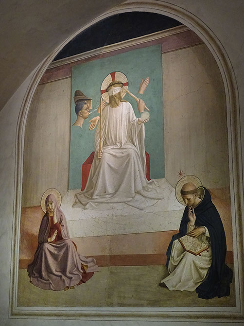 Fra Angelico (1395-1544). Verhöhnung Christi. Mit Jungfrau Maria und dem hl. Dominikus, 1438-1443. Detail.