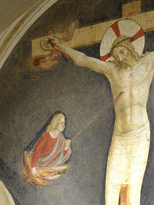 Fra Angelico (1395-1544). Christus am Kreuz mit helfenden Engeln. 1438-1443. Detail.