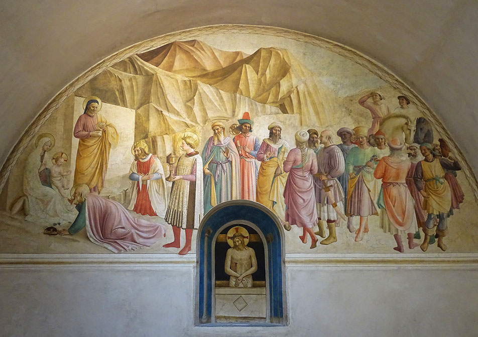Zellen-Korridor: Fra Angelico, Benozzo und Gehilfen. Anbetung der Könige, 1440-43. Detail.