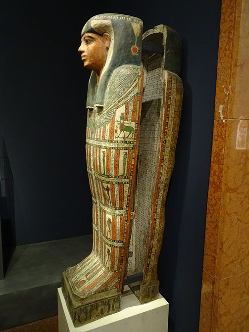 7. Jht v.Chr. Sarg der Priesterin Iset-en-heb. Ägypten, Theben, 25.-26. Dynastie. Holz. Liebighaus Frankfurt.